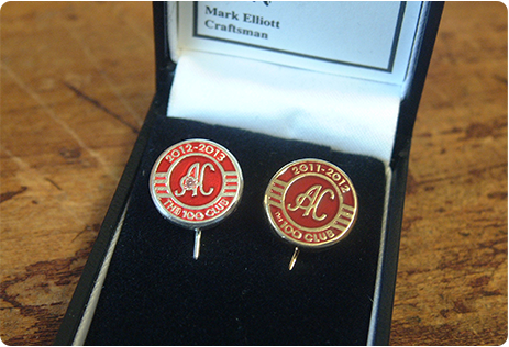 Arnold Clark Motor Dealership wanted to add incentives to its staff throughout the group to increase productivity within the firm. This resulted in the ‘100 Club’ being created. Staff on all levels were involved and awarded points for achieving specific targets within the company. At the end of the year, staff that had reached their targets were rewarded with the prestigious 9ct gold ‘100 Club’ lapel pin.